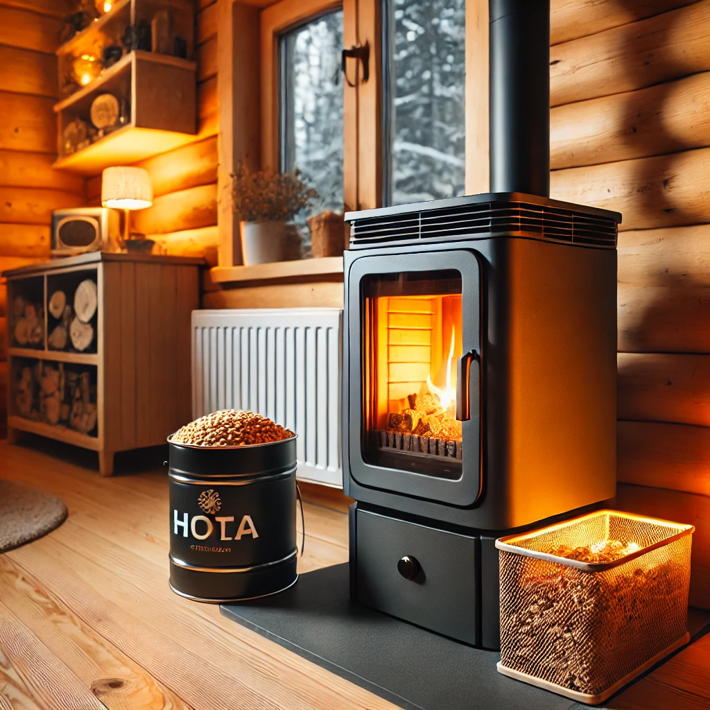 Utilise du bois compressé pour une chaleur durable, avec un bon rendement et un faible impact écologique.